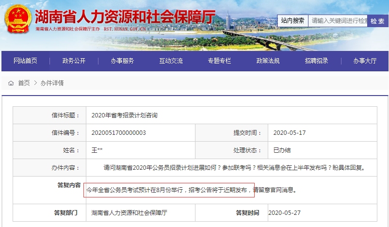 重磅消息:2020年湖南公務(wù)員考試筆試時(shí)間預(yù)計(jì)8月舉行,招考公告將于近期發(fā)布!速看: