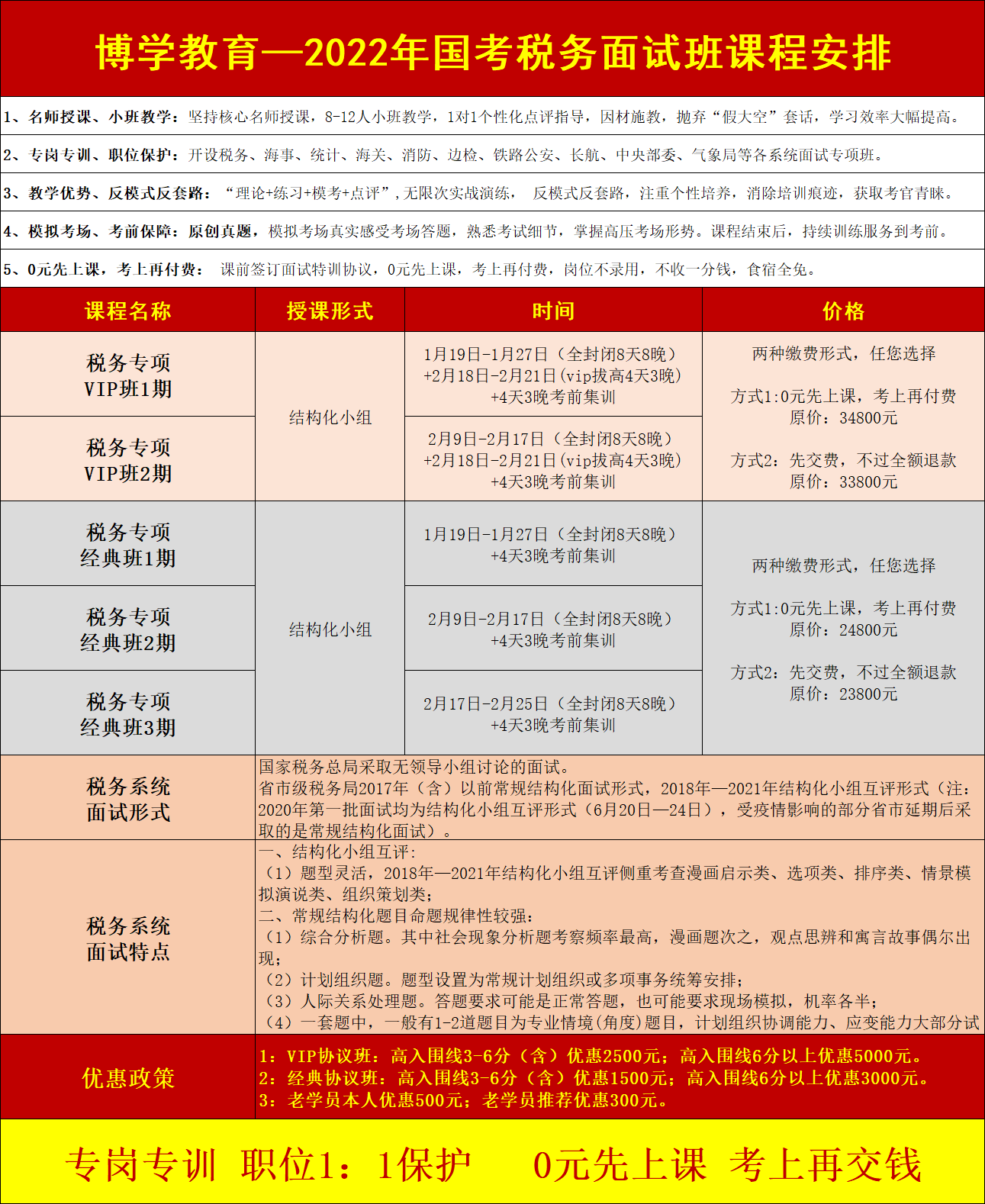 稅務(wù)局面試形式和特點 面試形式:國家稅務(wù)總局采取無領(lǐng)導(dǎo)小組討論的面試。 省市級稅務(wù)局2017年(含)以前常規(guī)結(jié)構(gòu)化面試形式,2018年—2021年結(jié)構(gòu)化小組互評形式(注:2020年第一批面試均為結(jié)構(gòu)化小組互評形式(6月20日—24日),受疫情影響的部分省市延期后采取的是常規(guī)結(jié)構(gòu)化面試)。 面試題量:結(jié)構(gòu)化小組互評每套題3道題目;常規(guī)結(jié)構(gòu)化面試每套題4道題目。 面試時間: (1)結(jié)構(gòu)化小組互評:15分鐘場外備考看題,進(jìn)入考場后,按要求每人依次答題,每道題目3分鐘(注:個人答題時間:2020年—2021年均為3分鐘,2018年—2019年均為2分鐘);全部答題結(jié)束,按要求展開互評,點評每人的時間為2分鐘;被點評人針對點評展開回應(yīng),時間2分鐘。 (2)常規(guī)結(jié)構(gòu)化面試:4道題目20分鐘,剩余3分鐘提醒時間。 (3)無領(lǐng)導(dǎo)討論:20分鐘場外備考看材料,然后進(jìn)入考場總時間85分鐘,首先個人陳述每人3分鐘,然后根據(jù)問題展開自由討論,最后推選一個代表作5分鐘陳述總結(jié)。 考查方式:看題+聽題相結(jié)合的 面試試題特點 第一、結(jié)構(gòu)化小組互評: (1)題型靈活,2018年—2021年結(jié)構(gòu)化小組互評側(cè)重考查漫畫啟示類、選項類、排序類、情景模擬演說類、組織策劃類; 第二、常規(guī)結(jié)構(gòu)化題目命題規(guī)律性較強: (1)綜合分析題。其中社會現(xiàn)象分析題考察頻率最高,漫畫題次之,觀點思辨和寓言故事偶爾出現(xiàn); (2)計劃組織題。題型設(shè)置為常規(guī)計劃組織或多項事務(wù)統(tǒng)籌安排; (3)人際關(guān)系處理題。答題要求可能是正常答題,也可能要求現(xiàn)場模擬,機(jī)率各半; (4)一套題中,一般有1-2道題目為專業(yè)情境(角度)題目,計劃組織協(xié)調(diào)能力、應(yīng)變能力大部分試題為國稅專業(yè)情境題,綜合分析有少量的國稅專業(yè)角度題目,總體難度不大。