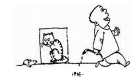 4、漫畫題:地上有一只老鼠,有一個人在墻上畫了一只貓,旁邊寫著“措施”,然后這個人就走了。談?wù)勀愕目捶ā?/span>